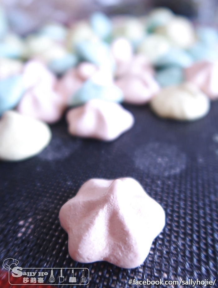 做完Panettone後, 遺留了很多蛋白, 想一次過清徐蛋白, 可以做些低成本又方便的蛋白糖。 用我至愛櫻花咀 1份蛋白,2份砂糖打起,食用色素用很小很小的, 加入打好的蛋白內。 用風100度焗70分鐘至乾身即成... 看全文 -