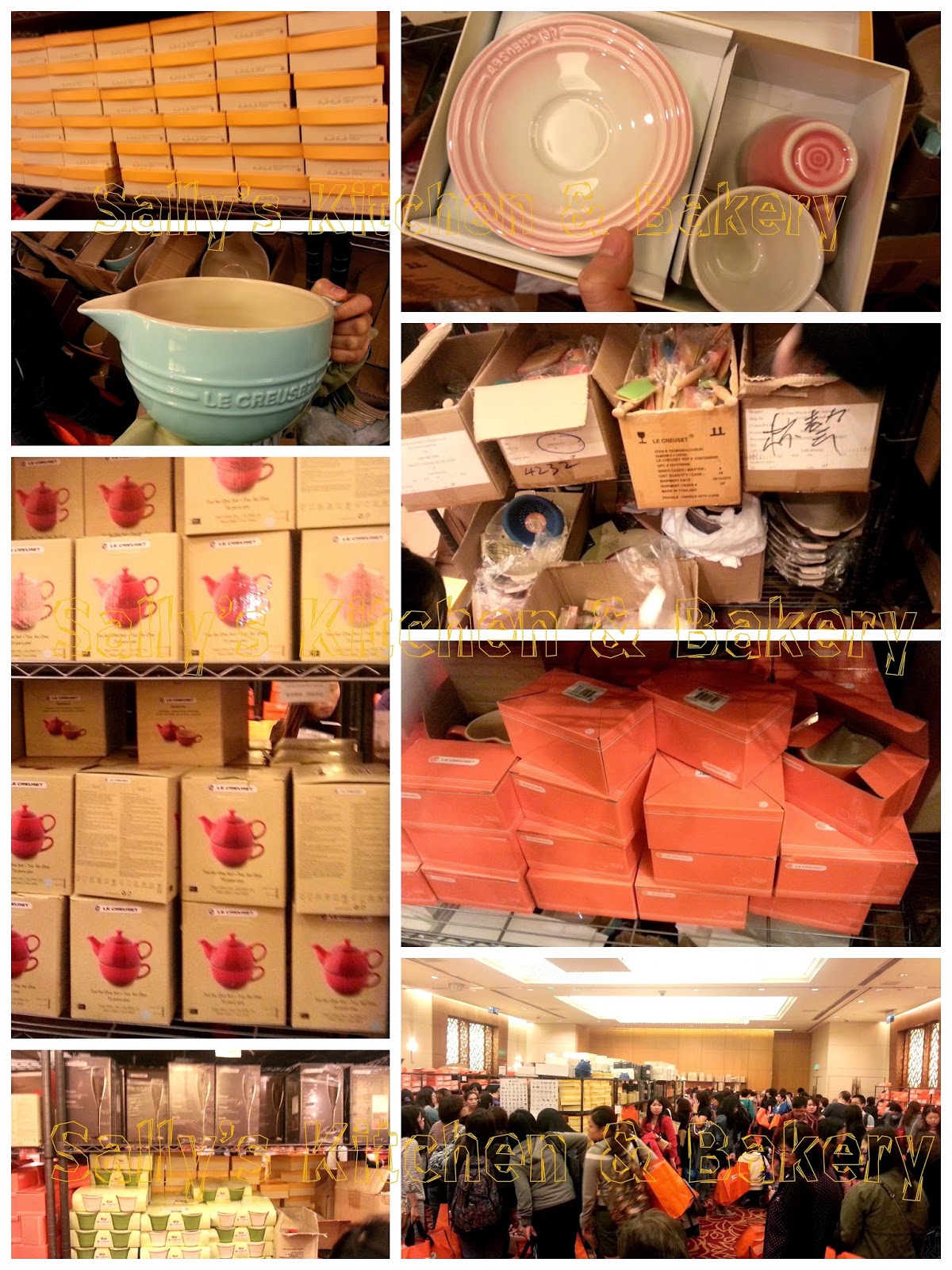 不 知是前幾天開倉已沽清了寶物,還是真的種類較少,不見花花心心生果長碟方碟上火碟,只見到有少量Trivet,有很多很多鍋子(25cm/27cm /29cm oval, 20cm/24cm/26cm round),很多茶煲套裝, 很多心心杯, 很多咖啡小杯, 很多Butter Bowl, 很多mini小焗杯,很多白酒杯香檳杯,還有很多大大的焗盤。當然....人亦非常之多。哈~