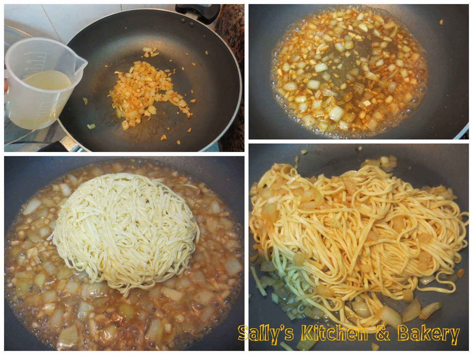 5. 加入清雞湯煮滾,然後放入伊麵,中火煮約1-2分鐘至收汁。